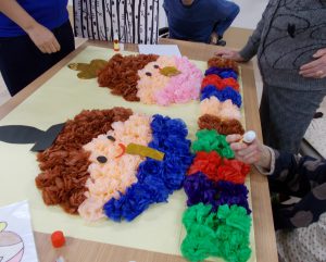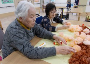作ったお花を大きな模造紙に貼っていきます